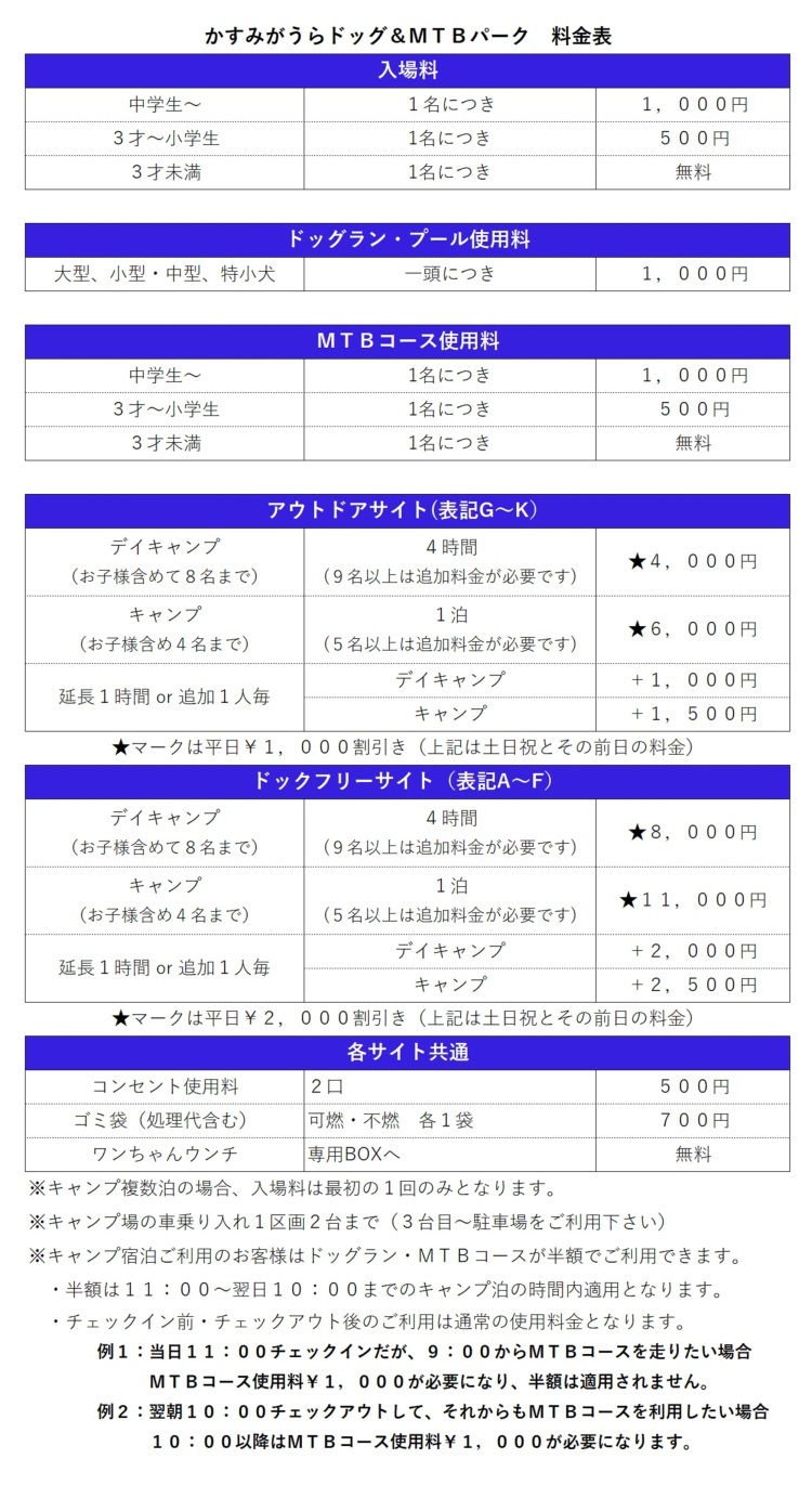 ※ヒトは施設入場料のみ、イヌはドッグラン使用料のみかかります